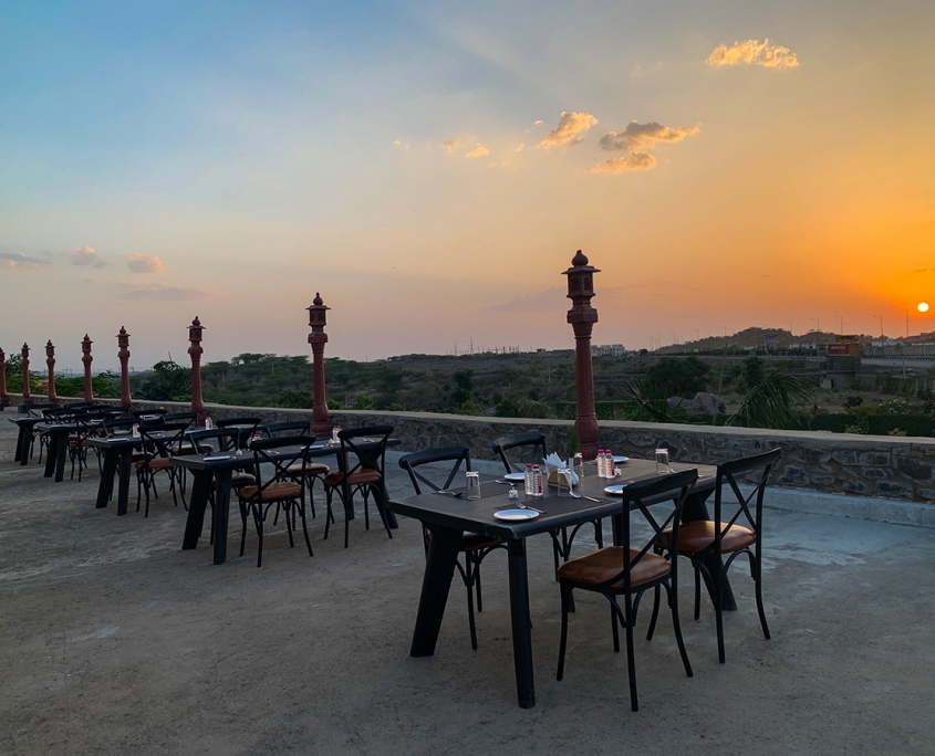 While our Experiential Cave Restaurant is the centrepiece of our culinary offerings, we also offer a range of dining options to cater to every palate. From al fresco dining under the stars to rooftop settings with panoramic Aarvali mountain range views, we ensure that each meal is a delightful experience, perfectly complemented by our impeccable service.